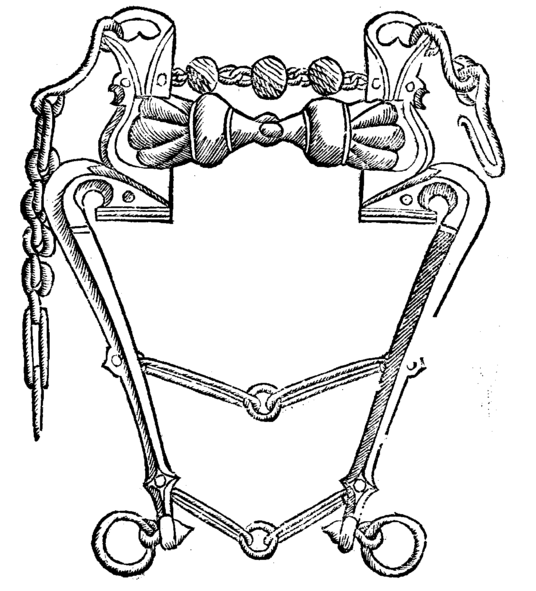 “Denn ein guter,erfahrener Reiter wird einem Pferd alles lehren in freiem, ebenen Feld mit leichten Hilfen. Wenn das Pferd all dies gelernt hat so magst du das zweite Zügelpaar (das direkt am Mundstück befestigt wurde) abnehmen und die Hand wie zuvor mit ruhiger, sanfter Kontaktaufnahme führen, damit es das Gebiss annimmt und sich nicht darauf legt. Sobald es im Genick nachgibt, kürze die Zügel und wenn du befindest, dass es den Kopf und die Stirn wie gewünscht trägt bedarf es nichts anderes als dabei eine ruhige Hand zu haben. .. dann wird sich das Pferd selbsständig wunderbar tragen und mit großer Feude das Gebiss annehmen.”