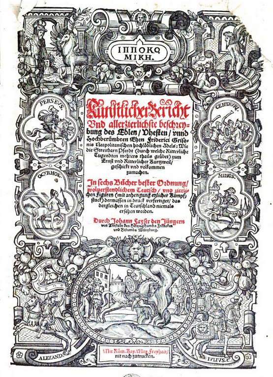 Grisones Werk erschien 1570 in Augsburg in deutscher Übersetzung und war weit verbreitet. Der Titel der deutschen Ausgabe lautet: “Künstlicher Bericht und allerzierlichste Beschreibung wie die streitbarn Pferdt zum Ernst und ritterlicher Kurzweil geschickt und vollkommen zu machen” (herausgegeben durch Johann Fayser)