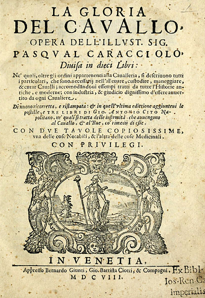 In dem Buch von Pasqual Caracciolo, La Gloria del Cavallo (1589), wird der Reiter Grisone beschrieben. Die Pferde sollen ihm schon beim ersten Besteigen perfekt gehorcht haben, was die Umstehenden so begeistert haben soll, dass sie seine Ratschläge wie andere den Rat des delfischen Apolls gesucht hätten.