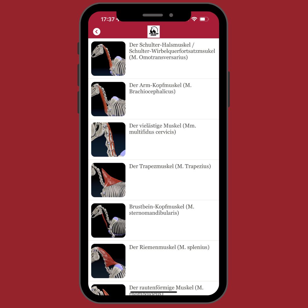 Mit der Pferdeanatomie Lern- und Nachschlage-App hast du alle wichtigen Informationen zu den Muskeln, Knochen und Gelenken deines Pferdes immer praktisch dabei. Egal ob du unterwegs bist und etwas nachschlagen möchtest oder deine Kunden beeindrucken möchtest, unsere App bietet dir genau das, was du brauchst.