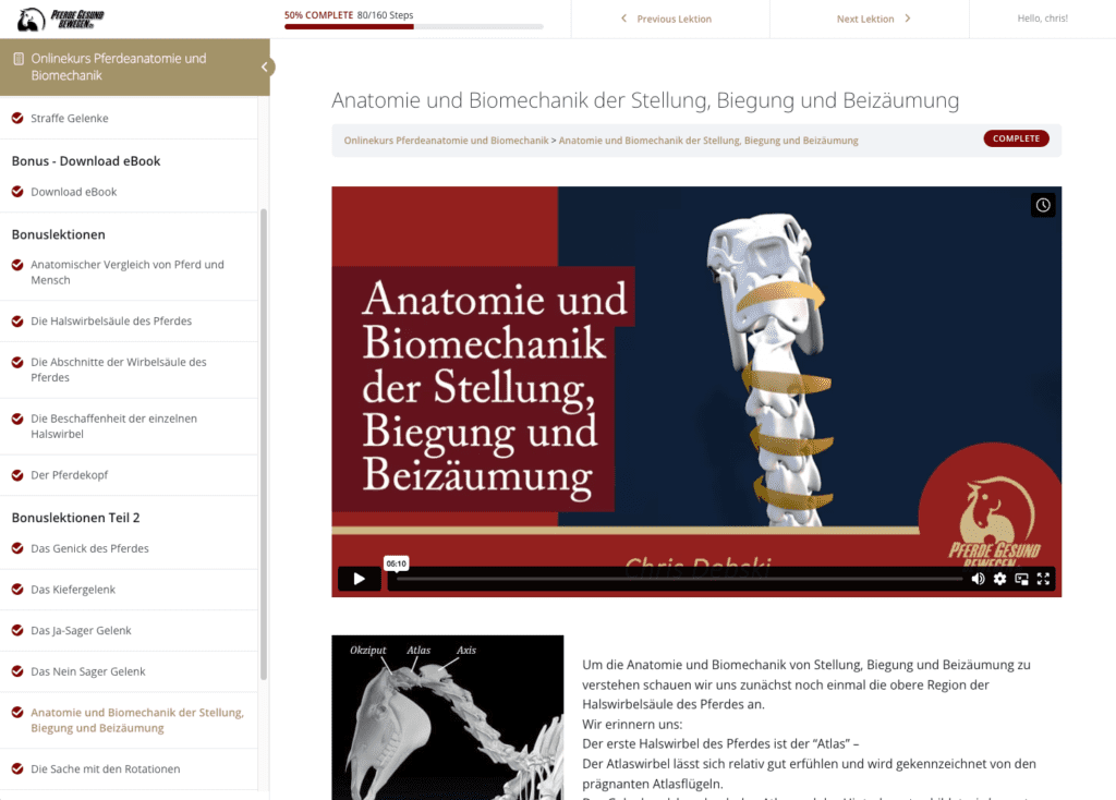 Der Anspruch der Plattform “Pferde gesund bewegen” ist es möglichst viele Reiter und Pferdebesitzer dort abzuholen, wo sie mit ihrem Wissen stehen und anschauliches und nachvollziehbares Wissen zu vermitteln. Bei der Vorbereitung der Lektionen habe ich daher einen besonderen Wert, auf Verständnis der Thematik vor allem für den »normalen« Reiter und ggf. Anatomie-Laien, zu legen.